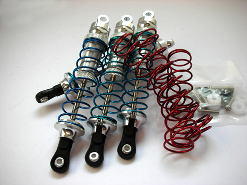 シルバーアルマイト処理された本体には、スレッド加工が為され付属2種類のスプリングの調整で硬さや車高等を調整出来ます。