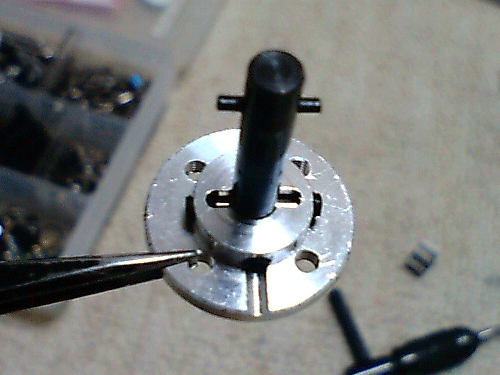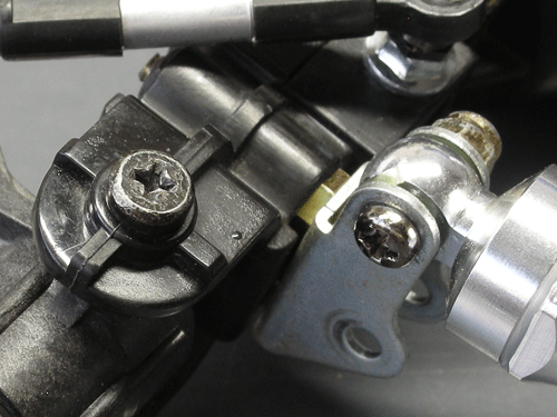 装着する際にピン等で固定したいところでしたが、加工が必要になるため、直接イモネジでピンの刺さる位置にイモネジが丁度当たるように固定しました。