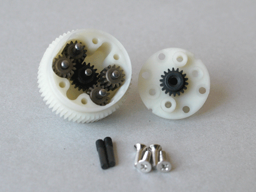 #2381と#2382を使用し、写真の様に組み立てます。組み立て後、エポキシパテ、エポキシボンド、ホットグルー等でデフギアを固定してふたを閉じます。