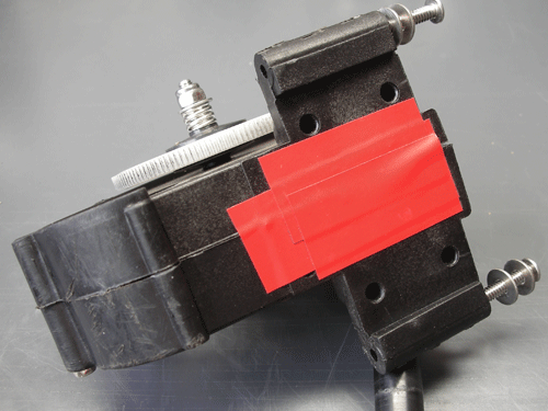 ギアボックスの穴が開いた部分にビニールテープなどでふたを閉じておく事をお勧めします。砂や小石が入るとトラブルの元ですから・・・