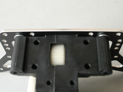 シャーシ側には、オイルダンパーの取り付け位置は、前後各4箇所あります。一見すると少ないように見える取り付け位置ですが、車高やオイルダンパーの寝かせる度合い等を調整するには必要にして十分な許容範囲ではないでしょうか?