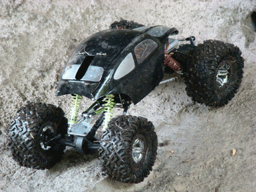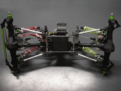 ムービー最後の場面を見ると分かる通り、左リアオイルダンパーが急勾配を登る際に数ミリ程度沈み込むような硬さが良好のようです。左リアオイルダンパーが柔らかすぎるとトルクツイストが随所に出る→フロントが不安定(横滑り、捻れによる接地不足)となるため、登板能力が著しく低下するようです。乱暴な言い方ですが、柔らかすぎるよりは硬すぎるほうが走破性は良いようです。