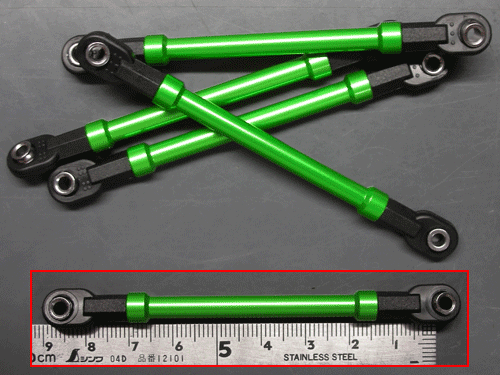 SW3のホイールベースをRCCrawlerルールブック規定(12.5インチ=31.7cm)に仕上げるためには、アッパーリンクは、元々TLTのロアアームに使用していたリンク棒を使用します。75mm程度になるように調整し、取り付けることにより、31.7cmのホイールベースで仕上げる事ができます。フロント、リア共に同じ様に製作します。