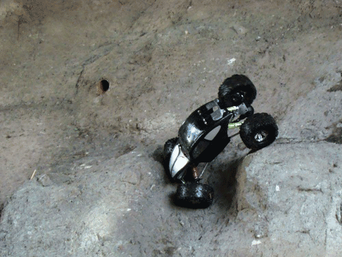 今回、オイルダンパーのスプリングのテンションを少々緩めた事、ストレートパックバッテリーをリポ2セル1500mAバッテリーにて挑みました。重心の問題もかなり解決の方向へ向かい、急勾配もなんとかクリアーしました。
