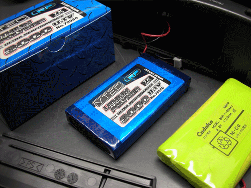 乾電池仕様にしようか困った末、リポバッテリーにすることに。1日6-8時間使用してもプロポのバッテリー残量を気にすることなく走らせることができるようになりました。
